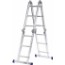 Enkel och lätt förvandlas den från exempelvis fristående stege till praktisk arbetsplattform. Den ledade konstruktionen ger 12 olika uppställningsalternativ. Ihopfälld är stegen bara drygt en meter. Kan kompletteras med plattform av polyeten. Endast avsedd som arbetsbänk.