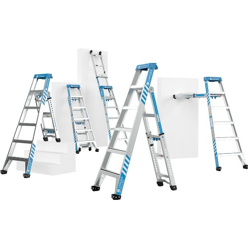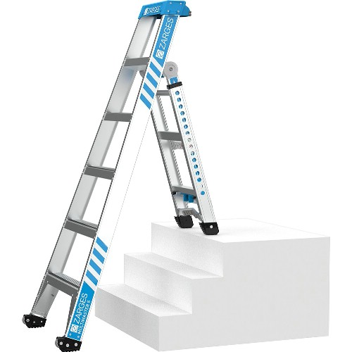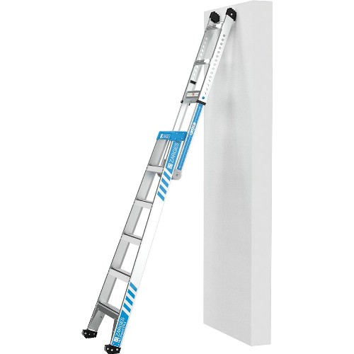 Stabil, säker, mångsidig och bekväm kombistege. En stege med fem funktioner. Kan användas som arbetsstege, trappstege, anliggande stege i offset-läge, anliggande stege samt utdragen anliggande stege i ett. Enkel och snabb växling mellan lägena med en hand. 80 mm djupa SaferStep halksäkra steg. Eloxerade stegsidor, svärtar ej händer. Multifunktionell övre del som gör att stegen kan lutas säkert mot plana väggytor, inner- och ytterhörn, pelare och stolpar, med höjdanpassning. Innovativ hylla för verktyg med magnetfack för små delar och centralt urtag för sladdlös skruvdragare eller liknande verktyg. Justerbar stödsida med 35 mm intervaller möjliggör att jämna ut nivåskillnader upp till 500 mm i fristående läge. Stödsidan kan även användas som justerbart väggavstånd, 880-1200 mm. Lätt och ergonomisk transport tack vare två hjul på stegdelen och handtag under toppen.