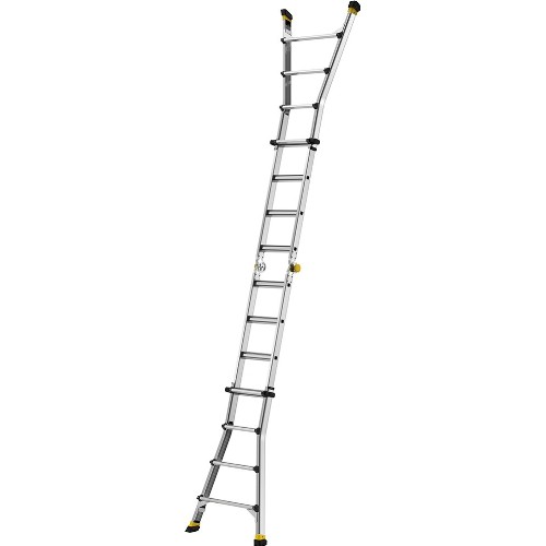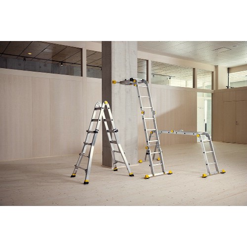 Smart og kompakt stige for fleksibel bruk. Leddstige som kan brukes som frittstående eller festet stige, noe som gir 2 stiger i 1. Bred sokkel med teleskopdeler som kan høydejusteres med 270 mm mellomrom. Anodisert aluminium for ikke å sverte hender og klær.