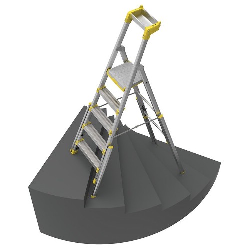Flexibel trapphusstege för arbete i trappor och platser med ojämn stödyta. Innovativ infästningsteknik med FDS-skruv ger en stabil konstruktion med minimal svikt och riktigt lång livslängd. Alla ben kan justeras individuellt för stabil placering och säkert arbete. Stegsidans ben kan förlängas 415 mm. På stödsidan kan de förlängas 1030 mm. Tyststängande plattform (310 x 270 mm) i metall med dubbelriktat halkskydd. Både ben och utdragsben är försedda med glidskydd för maximal säkerhet i alla placeringar. Djup aluminiumhylla skruvad direkt i sidoprofilerna för ökad hållbarhet. Aluminiumprofilerna är anodiserade så att du inte svärtar ner dina händer och kläder.