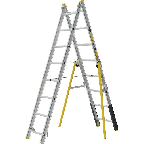 Även utrustad med säkerhetsben som motverkar att stegen faller i sidled och att basen faller undan, ger en bredd på 1300 mm vid basen.