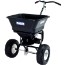 Spreder med plastbeholder. Egnet for grus, pukk, salt og gjødsel. Sprederen drives av et konisk tannhjul i rustfritt stål. Spredningsbredden avhenger av hastigheten som kjøretøyet kjøres med. Kontroll for justering av mengde. Værbeskyttelse for beholderen er inkludert. Luftdekk med glidelagre 13x5-6, Ø 310 mm. Sporbredde 700 mm. Leveres umontert.