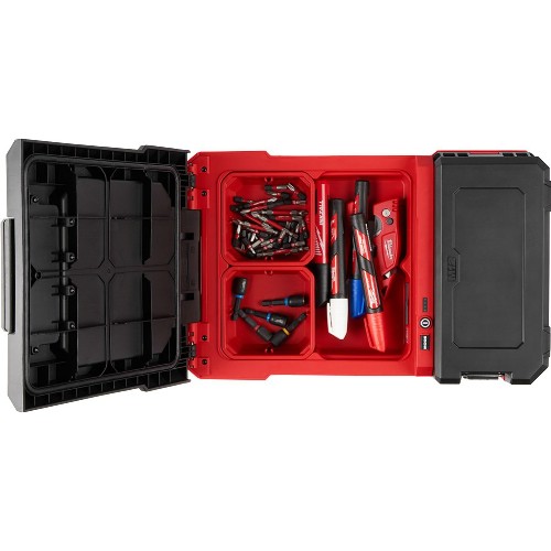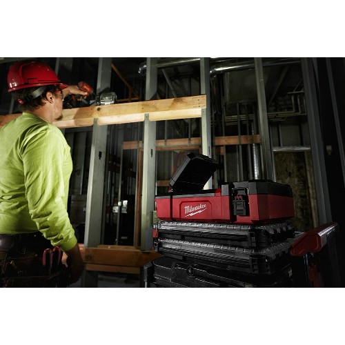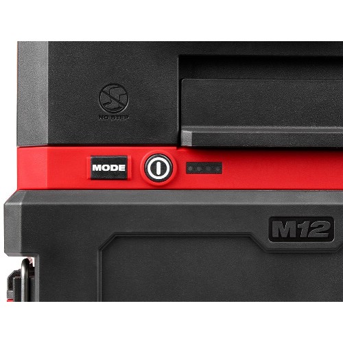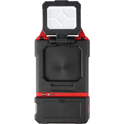 Svært effektiv LED-belysning med tre forskjellige lysstyrker, 1400, 700 og 350 lumen. Drevet av Milwaukee 12 V batteri, driftstid på opptil 12 timer. Justerbart lyshode, 300° horisontalt og 180° vertikalt. Oppbevaringsplass for mindre gjenstander. Innebygd lader for rask og praktisk lading av mobile enheter via 2,1 A, USB-C og USB-A. Batteriindikator som viser når batterinivået er lavt. Kompatibel med Milwaukee Packout lagringssystem. IP54-klassifisert, beskyttet mot støv og vannsprut. Fleksibelt batterisystem, passer til alle Milwaukee M12-batterier.