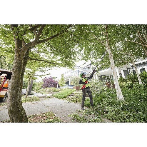 Kraftfull grensåg 18 V Li-Ion med kolborstfri motor. Teleskopfunktion med snabblåsning, justerbar mellan 270 och 400 cm. Utvecklad för att uppnå exakta snitt i högre trädområden. Hög prestanda med kedjehastighet på 25,4 m/s och 30 cm svärd ger hög skärhastighet. Sågar snabbare än motsvarnade bensinsågar. Sågkapacitet på upp till 70 kapningar av grenar Ø 150 mm per laddning med ett 12,0 Ah High Output-batteri. Steglös hastighetsreglering för extra kontroll, ger omedelbar gasrespons för att nå full hastighet på under en sekund. Läckagefri och automatisk kedjesmörjning med lättåtkomlig tank och tydligt insynsfönster. Enkel justering av sågkedjan. Försedd med krok för att lyfta och dra avskurna grenar ur vägen. Verktyg och batteri är skyddade mot överbelastning, överhettning och urladdning. Kompatibel med axelrem för komfort. Flexibelt batterisystem, passar samtliga Milwaukee M18-batterier.