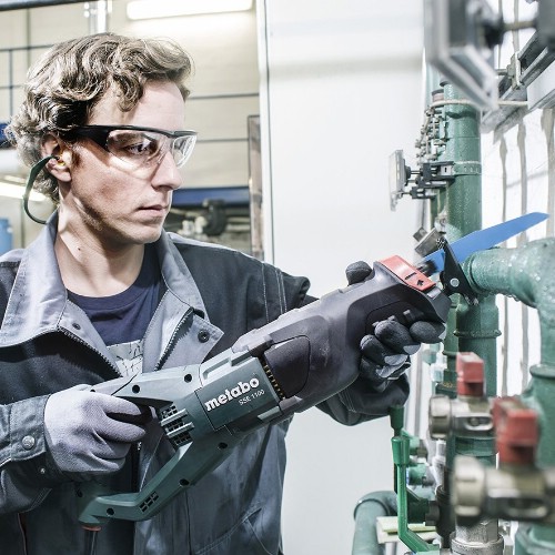 Smidig maskin med kraftfull motor och Softgrip-handtag. Robust växelhus i pressgjutet aluminium med hölje. Metabo Quick för byte av sågblad utan verktyg. Sågbladet kan vridas 180°, vilket gör sågningen lättare vid arbete ovan huvudhöjd. Djupanslag som justeras utan verktyg för optimalt utnyttjande av sågbladet och för många olika tillämpningar, t.ex. instickning. Vario (V) elektronik för arbete med materialanpassade slagtal. Strömbrytare med låsfunktion för kontinuerlig drift. Växellådan är skyddad mot damm och stänkande vatten. Levereras med plastlåda. 4 m kabel.