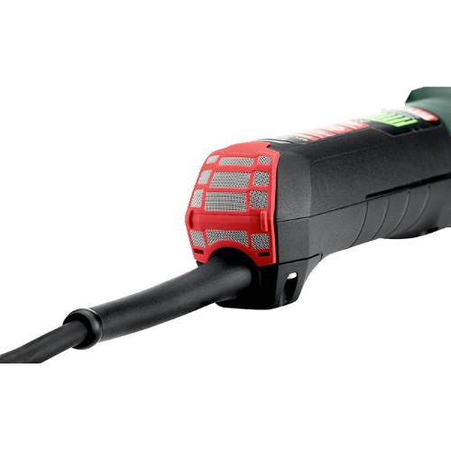 Kraftfull 125 mm vinkelslip med högeffektiv och underhållsfri kolborstfri motor på 2000 W. Med Tacho-Constamatic-elektronik (TC), som ger ett konstant varvtal även under belastning . Integrerad autobalanserare för upp till 50% mindre vibrationer på händer och armar, ger också en längre livslängd för maskinen och upp till dubbelt så lång livslängd för slipskivorna. Högt användarskydd med säkerhetsbroms, anti-kickback-funktion, överbelastningsskydd, mjukstart och skydd mot återstart. Skyddskåpan justeras utan verktyg. Vibrationsdämpat stödhandtag VibraTech (MVT). Växelhuset kan monteras i steg om 90° för användning med vänster hand eller för kapning. Verktygslöst och snabbt skivbyte med ett knapptryck med M-Quick-systemet. Enkelt underhåll tack vare kåpa för kabelbyte. Avtagbart dammskyddsfilter som skyddar motorn mot grova partiklar.