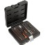 1/4" infästning. I lackerad och emaljerad stålbox med insats i elastiskt plastmaterial som håller verktygen på plats.