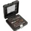 I lackerad och emaljerad stålbox med insats i elastiskt plastmaterial som håller verktygen på plats. Hylsor med Dynamic Drive-profil.