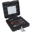 1/4" infästning. I lackerad och emaljerad stålbox med insats i elastiskt plastmaterial som håller verktygen på plats.