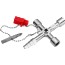 Universalnyckel för områdena värme-, klimat-, sanitets- och byggnadsteknik, t ex för dörr- och fönsterhandtag eller för ventilation av värmeelement. Av gjuten zink. Bitsadapter för 1/4" bits.