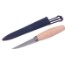 Slöjdkniv med smalt, spetsigt blad (85 mm) av laminerat kolstål och format skaft av oljad björk. Laminerat kolstål ger oöverträffad seghet och eggbeständighet, dock så rostar laminerat kolstål lätt, torka av och olja in bladet efter användning. Levereras med knivfodral av plast.