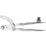 Bågcirkel av stål. Rektangulära skänklar med utanpåliggande båge och hållare för blyertspenna. Levereras utan penna.