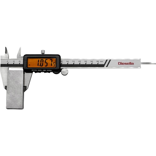 Digitalskjutmått i rostfritt stål. Med stor och extra tydlig orange LCD-display som ger mycket lättavlästa mätvärden. Skänklar tillverkade av härdat rostfritt stål. ABS-funktion. Automatisk på/av-funktion. Nollställning. Finjustering. Omställbar från mm till tum. Med platt djupmätare. Monoblock-profil ger minskad friktion och ökad livslängd. Drivs med 1 st CR2025 batteri (ingår).