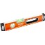 Vattenpass av aluminium med orange anodiserad finish. Stötupptagande ändar. V-format spår längs hela undersidan möjliggör mätning med precision även på rör. Stora libeller som är lätta att läsa av även i dåliga ljusförhållanden. Gummiklädda greppvänliga hål gör vattenpasset lätt att hantera. Lasermärkt måttskala.