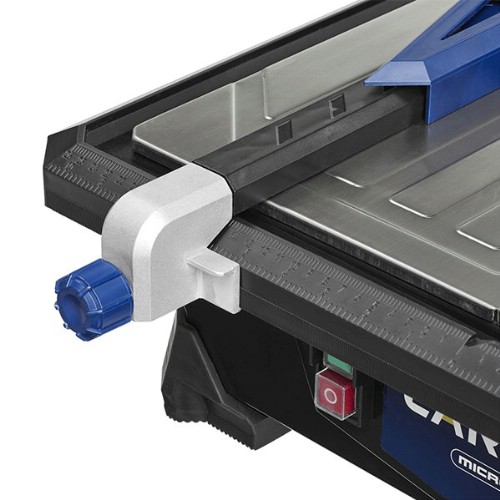 Kompakt kakelsåg med 230 V 1-fas motor och 180 mm diamantkapklinga. Utrustad med vattenbehållare för smidig och effektiv våtkapning. Avsedd för snabb och effektiv sågning av kakel, keramik, porslin, marmor, skiffer eller kalkstensplattor för vägg- eller golv. Stor överdel av rostfritt stål med utdragbart bakre stöd för större plattor. Försedd med klyvanslag och justerbart vinkelanslag för 15°, 30° eller 45° vinkelkapning. Det högra kapbordet kan justeras för 22,5° och 45° geringssnitt. Integrerat handtag för enkel transport.