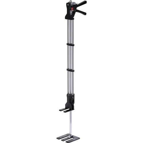Løfte- og spennklemme i kraftig utførelse med enhåndsgrep. Lang versjon på 1 meter for en ergonomisk og mindre belastende arbeidsstilling. Løfte- og spennkraft på 150 kg. Løfter opp til 215 mm. Spennvidde på maks 385 mm. Laget av rustfritt stål, herdet stål og aluminium. Fungerer som en hjelpende hånd med millimeterpresisjon ved montering av dører, vinduer, skap, kjøleskap, vaskemaskiner og oppvaskmaskiner, stendere, bjelker, ventilasjonssystemer, gulv og vegger etc. Utstyrt med to knapper for å slippe trykket, den høyre senker gjenstanden raskt og den venstre senker gjenstanden trinnvis med millimeterpresisjon. Enkelt å bytte fra løftefunksjon til presse- og klemmefunksjon. Bygger kun 6 mm i den støpte bunnplaten. Bunnplate med tre hull for enkel festing i arbeidsstykket for ekstra stabilitet eller fast montering. 38 mm lange løftegafler. Skinne med 10 mm hull for praktisk opphenging. Skinnens dimensjon 16 mm bred og 8 mm tykk.