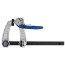Kraftfull tving med snabblåsning. Såväl fastsättning som lossning sker med ett enkelt handgrepp. Tillverkad av stål med profilerad skena. Ledbar tryckplatta. Med rakt, lackerat handtag av stål.