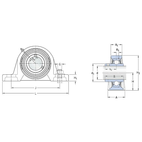 Komplett lagerenhet med insatslager. Lagerhus av gjutjärn försett med smörjnippel. Insatslager med frikterande tätning av NBR och extra avkastarbricka på båda sidor. Kan förses med ändlock.