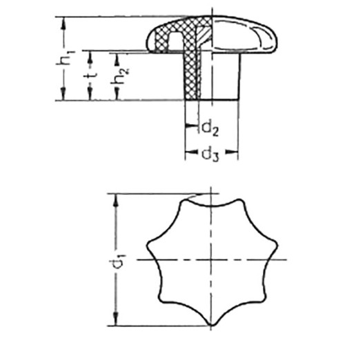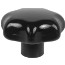 Stjärnvred i svart, blank termoplast. Gängad bussning i mässing.