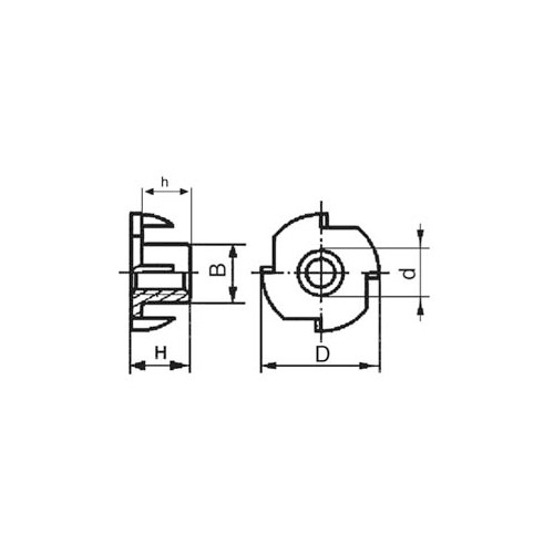 Rund slagmutter. Brukes for å oppnå metrisk gjenge i en trekonstruksjon. Blank sinkbelagt.