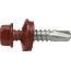 Borrende og gjengepressende byggplateskruer lakkert i farge som matcher byggplaten. Sekskanthode og leddet skive med 3 mm EPDM-gummi. Kan bore i både lettmetallbjelke og trestender. For utendørs bruk.