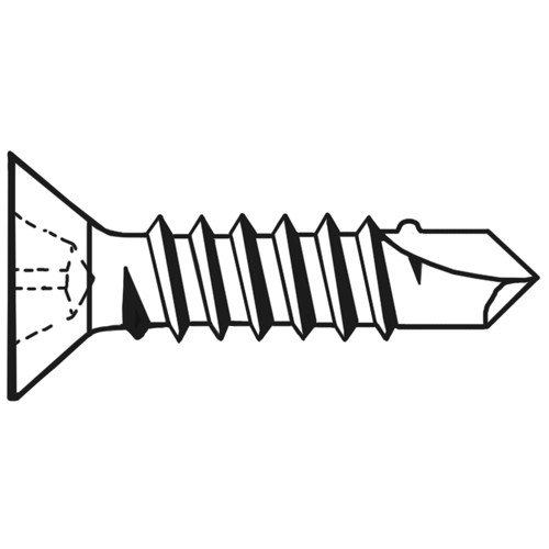 Borrande och gängpressande skruv med försänkt huvud. Skruven borrar hål och formar gängor i materialet. Lämplig för stål, aluminium m.fl. material.