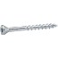 Sponplateskrue for festing av sponplater til treramme. Senket hode med Torx-spor. Forsynt med spor under hodet for fresing og senking.