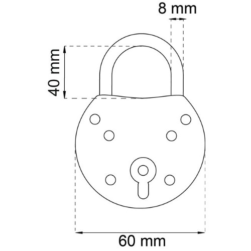Hengelås for brannvesenet i rødlakkert stål. Bøyle i korrosjonsbeskyttet stål. Uten nøkkel.