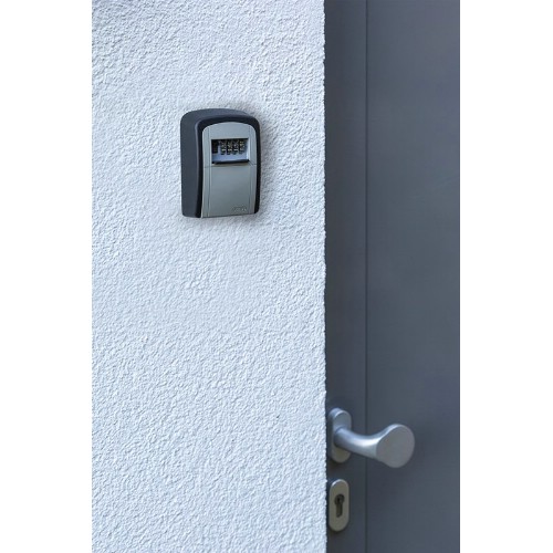 Nyckelskåp för väggmontering inomhus och på skyddade platser utomhus. För säker förvaring av nycklar och små värdesaker för behöriga personer. 4-siffrig individuellt inställbar sifferkombination. Med plats för 7 nycklar eller ca 4 plastkort. Stabilt aluminiumhus med lucka av aluminium med sifferhjul. Skyddslock med skjutmekanism. Väggfäste med skruvförband.