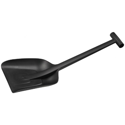 Bilsnöspade i lätt och tåligt material, tillverkad i ett stycke. Med ergonomiskt format skaft och starkt T-handtag.