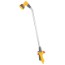 Stavsprinkler med låsbar avtryckare i läge på/av med separat flödeskontroll. Reglerbart sprayhuvud med fem sprutmönster: Jetstråle, kona, snabbfyllning, flat spraystråle och fin strilspray. Förlängt handtag på 90 cm.