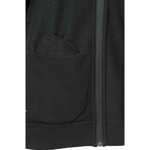 Huvtröja i BCI-bomull med hel dragkedja och fodrad huva med dragsko. Två sidfickor med dragkedjor, högerfickan är utrustad med D-ring på insidan. Innerficka på vänster sida. Öglad insida (French Terry). Tvätt 60°C.