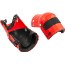 Ledade knäskydd av hårdplast. Fästs med elastiska gummiband. Lämpliga vid t ex rivnings- och anläggningsarbeten.