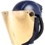 Vernehjelm med visir beregnet for bruk med den batteridrevne vifteenheten SR 500, SR 500 EX eller SR 700 og godkjente filtre som inngår i Sundströms vifteassisterte åndedrettsvernsystem. Utstyrt med en gullbelagt visirskive (mørkhetsgrad EN 5) som brukes som varmeskjold ved arbeid i nærheten av sterke varmekilder. Belagt med et tynt lag gull, noe som gjør at den reduserer strålevarmen kraftig. Hjelmens pusteslange kobles til den filtrerte viften. Overtrykket i visiret hindrer partikler og andre forurensninger i å komme inn i pustesonen. Kan også brukes sammen med SR 507 trykklufttilbehør. Denne kombinasjonen danner et pusteapparat med kontinuerlig luftstrøm for tilkobling til trykkluft. Apparatene kan brukes som et alternativ til filterbeskyttelse i alle situasjoner der det anbefales. Dette gjelder spesielt ved tungt, varmt eller langvarig arbeid. Beskytter pustesonen og hodet. Sammenleggbart visir med PC-visirskive og visirramme som tåler partikler med høy hastighet på 120 m/s, væskesprut og sprut av smeltet metall. Den gullbelagte visirskiven er montert på utsiden av det oppfellbare visiret. Tilført luft holder visiret fritt for støv. Justerbar hodeposisjon. Utskiftbar, fleksibel pusteslange. Utstyrt med utåndingsventil. Utskiftbare beskyttelsesfolier er tilgjengelig som tilbehør. Standardfeste for øreklokker.