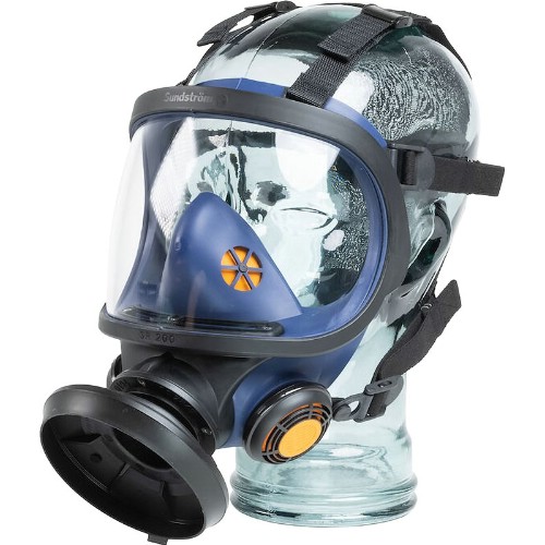 Masken komplettert med slange SR 550 (PU) eller SR 551 (gummi), den kan også brukes som ansiktsmaske sammen med Sundströms vifte SR 500 eller SR 700.