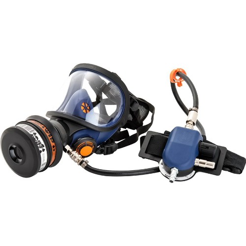Tryckluftsmatad halvmask med filter-back-up och utmärkt passform, hög skyddseffekt och mycket god andningskomfort för de tuffaste användningsområden. Avsedd att anslutas till en lämplig tryckluftskälla med andningsduglig luft. Övertrycket som då uppstår i masken förhindrar att omgivande förorenad luft når användaren. Kan användas som alternativ till filterskydd i alla situationer där sådana rekommenderas. Detta gäller i synnerhet vid tunga eller långvariga arbeten och när föroreningarna har dåliga varningsegenskaper eller är särskilt giftiga. Tillverkad av material som inte ger upphov till gnistor vid friktion, vilket möjliggör användning i explosiv/brandfarlig miljö. Reglerventilen är försedd med en varningsvissla som ger signal om luftmängden sjunker under den rekommenderade. Flödesmätare för kontroll av luftflödet medföljer. Tryckluften bör renas med ett tryckluftfilter typ Sundströms SR 99-1.