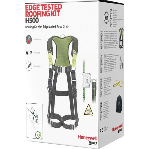 Komplett fallsikringspakke for arbeid på tak. Består av fallsikringssele H500 IC6 H-design med stor bevegelsesfrihet. Enkel og fleksibel å ta av og på. Trykkavlastende polstring på skuldre og rygg som minimerer tretthet og overbelastning av muskler. Høy pusteevne. Optimal komfort rundt ben og skuldre. Sidejusteringsstropper som gir ekstra god passform. H-design for ben gir økt brukerkomfort. D-ring foran og SRL-ledd bak for enkel tilkobling av for eksempel fallsikringsblokker. Brukervennlige holdere gjør at brukere kan feste for eksempel stillaskroken når den ikke er i bruk. Tydelig identifiserbare fallindikatorer for problemfri inspeksjon. Lette Cobra hurtigspenner i aluminium. Innebygd RFID-brikke for problemfri inspeksjon. Vannavstøtende bånd. Lav vekt. Godkjent for maks 140 kg. 20 m kanttestet fangline (Ø 11 mm) RG300, med tauklemme som automatisk låser tauet ved fall. Tauklemme i slitesterk korrosjonsbestandig konstruksjon i rustfritt stål og med kobling som letter forankring til selen. Forankringsslynge 1,5 m og oppbevaringspose.