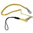 Verktygssäkring med elastisk flerfunktionsögla med justerbart spänne eller med ring och stålögla med stopp. Fastsydd karbinkrok. Tillverkad av stark väv och en fjädrande inre stålfjäder som absorberar rycket för kraften vid ett tappat verktyg. Verktygssäkringen minimerar fallrisken för verktyg vid arbete på hög höjd och gör arbetet mer effektivt. Utrustad med karbinkrok för en snabb och säker av- och påmontering