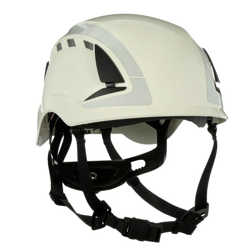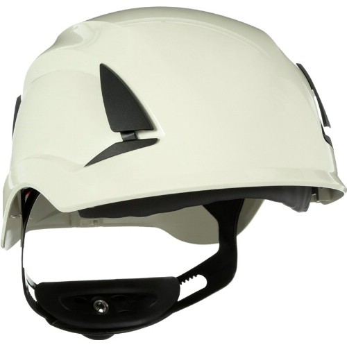 Vernehjelm som har et klatrehjelminspirert design uten brem, og blokkerer derfor ikke synsfeltet oppover. Hjelmen gir god sikkerhet og komfort i en rekke arbeidssituasjoner, fra arbeid i høyden til generelle bruksområder i industrien. Elektrisk isolasjon til 1000 V. Med ventilasjonshull for ekstra god ventilasjon. Hjelminnredningen er basert på patentert Pressure Diffusion-teknologi som reduserer trykket mot pannen. Hjelminnredningen har 6-punktsfeste som gjør det mulig å tilpasse høyde og passform med vertikale justeringer på flere nivåer. Celleplast i innredningen. Hakebånd med 4-punktsfeste og smart velger for hakebåndets innfestningspunkter, noe som gjør det mulig for brukeren å velge en innstilling for enten klatre- eller industrihjelmstandard. Hakebåndet har plastspenne. Uvicator-sensorplaten sier i fra når hjelmen har blitt overeksponert for UV-stråling og må byttes ut. Rattjustering for enkel individuell tilpasning av størrelse. Svettebåndet kan tas av og vaskes. Det finnes et stort tilbehørsutvalg av visir, øreklokker og annet tilbehør fra 3M. Integrerte klemmer holder det elastiske båndet på plass ved bruk av vernebriller og hodelykter. Brukertemperatur -30°C til +50°C. Godkjent for lateral deformasjon.