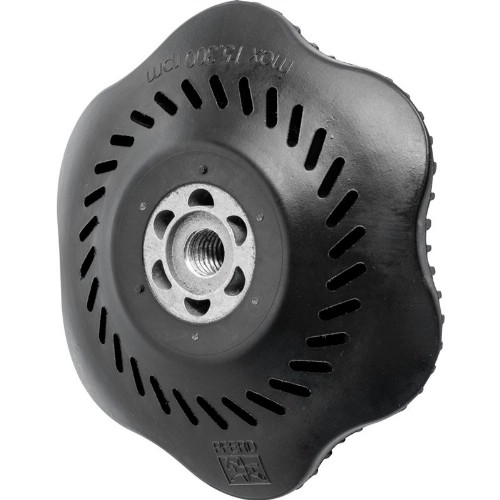 Stödrondell för Pferds fiberrondeller med COMBICLICK-fäste. Den geometriska formen på kylflänsarna ger hög luftgenomströmning, som gör att den termiska belastningen på slipmedlet och arbetsstyckena reduceras väsentligt. Det patenterade COMBICLICK-spännsystemet reducerar tiden för rondellbyten till ett minimum. Används tillsammans med vinkelslipmaskiner.