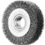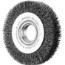 Cirkulärborste med vågig ståltråd. För universell användning i verkstadsindustrin. Brett utförande. Utmärkt för medelsvår borstning på stora arbetsstycken både manuellt och maskinellt. Kan användas på alla vanliga stationära maskiner genom variabelt centrumhål.
