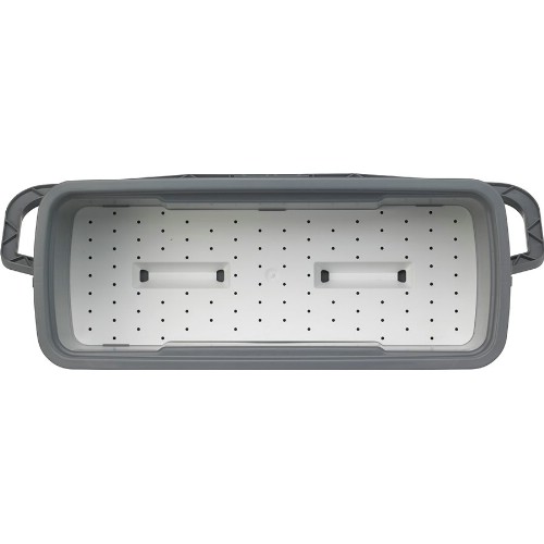 Mopplåda med lock för preparering, förvaring och transport av moppar. Passar till fick- och kardborrmoppar 40 cm. Passar alla Vikan rengöringsvagnar. Doseringsetiketter medföljer.