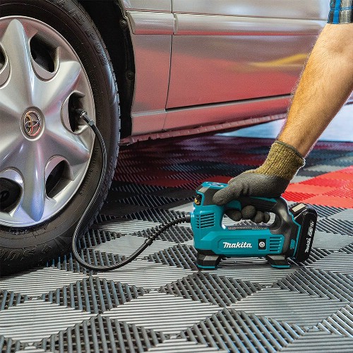 Batteridriven kompressor 18 V Li-Ion med tryckmätare och ventiler för fyllning av olika typer av produkter. Avsedd för pumpning av till exempel bil- och cykeldäck och bollar. Slutar automatiskt pumpa när det förvalda trycket nås. Skyddssystem förlänger batteriets livslängd genom att stänga av maskinen när batterinivån blir för låg. LED-belysning.