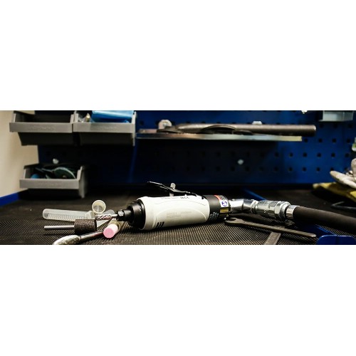 Maskinen är robust och med ett varvtal på maximalt 20 000 r/min. Den är lätt i vikt och utrustad med säkerhetspådrag. Idealisk för gradningsoperationer och formslipning med slipstift eller roterande filar.